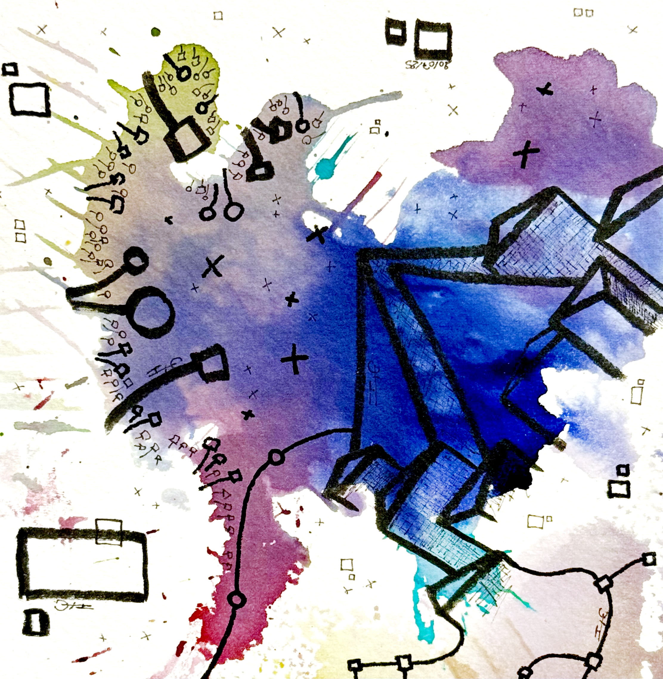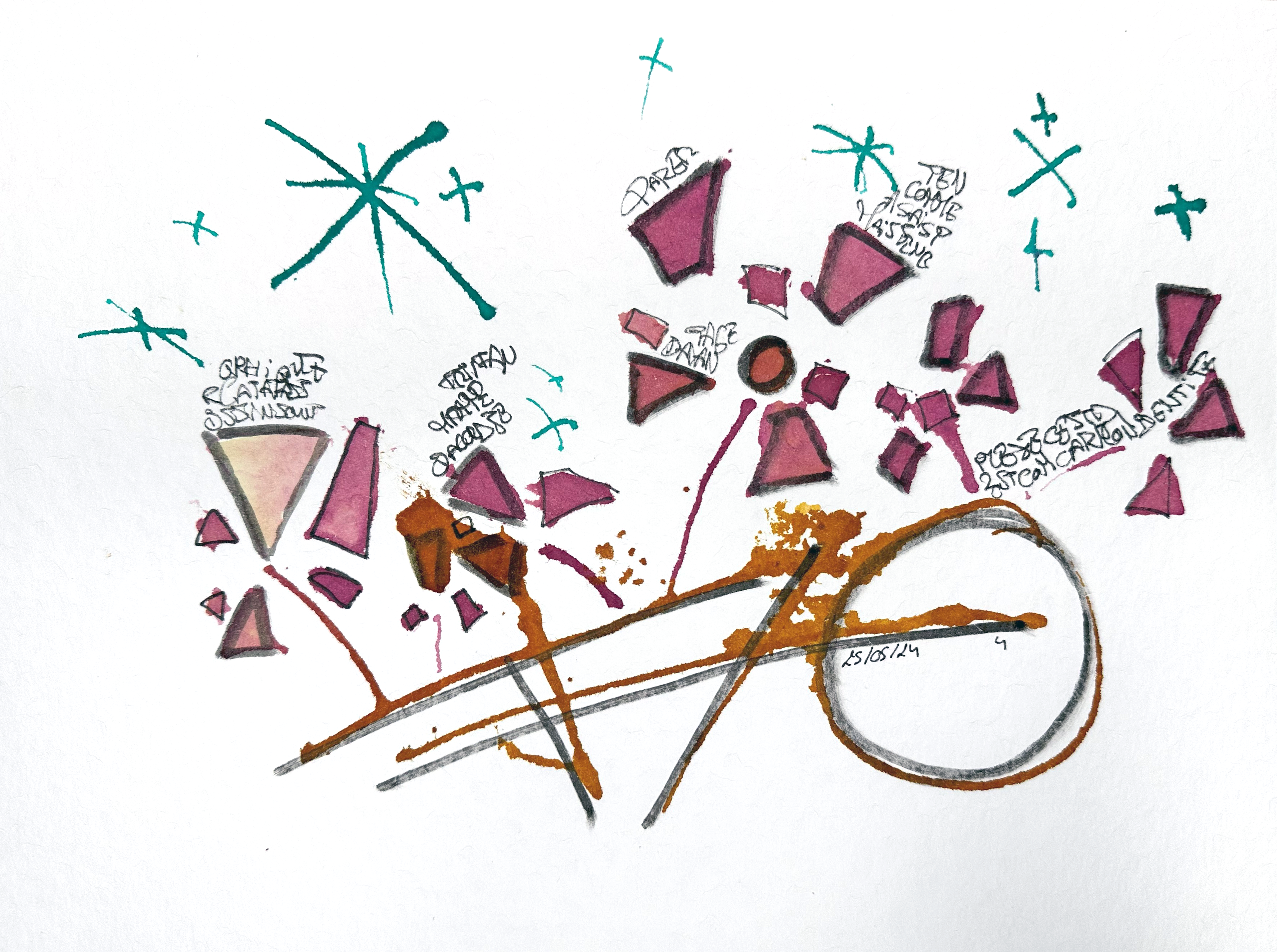 Dislocations est une série de dessins à l’aquarelle où les couleurs foisonnent, se superposent, se repoussent parfois, se cherchent souvent. Chaque œuvre est un territoire éclaté, une carte sensible de nos rêves. Chaque tâche, chaque teinte y incarne une utopie singulière, une vision du monde possible, un espoir propre à celui qui rêve.